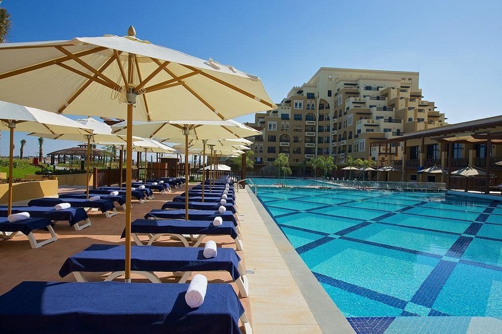 Situated on the pristine shores of Al Marjan Island, Rixos Bab Al Bahr offers an unparalleled ultra all-inclusive experience in Ras Al Khaimah. This luxurious 5-star resort boasts 715 rooms and suites within its iconic pyramid-shaped structures, providing guests with breathtaking views of the Arabian Gulf. With a diverse array of 14 restaurants and bars, a private beach, and a host of entertainment options, Rixos Bab Al Bahr caters to both families and couples seeking a lavish escape.